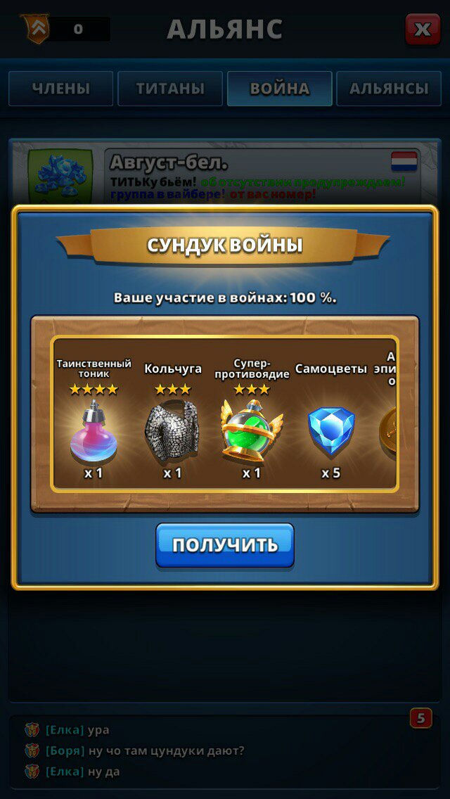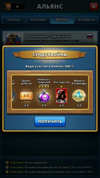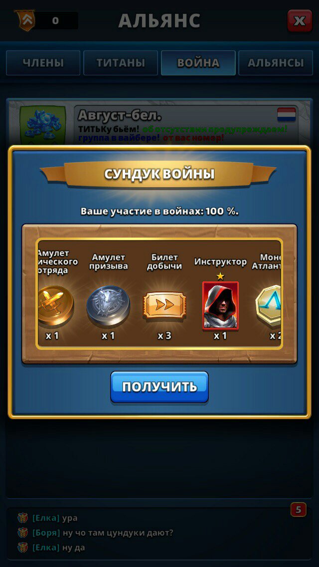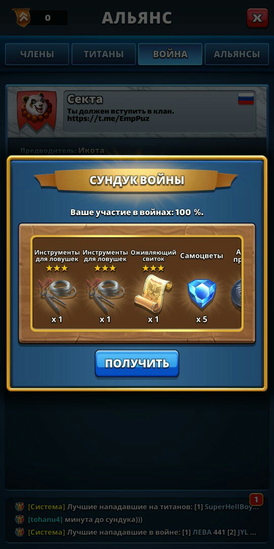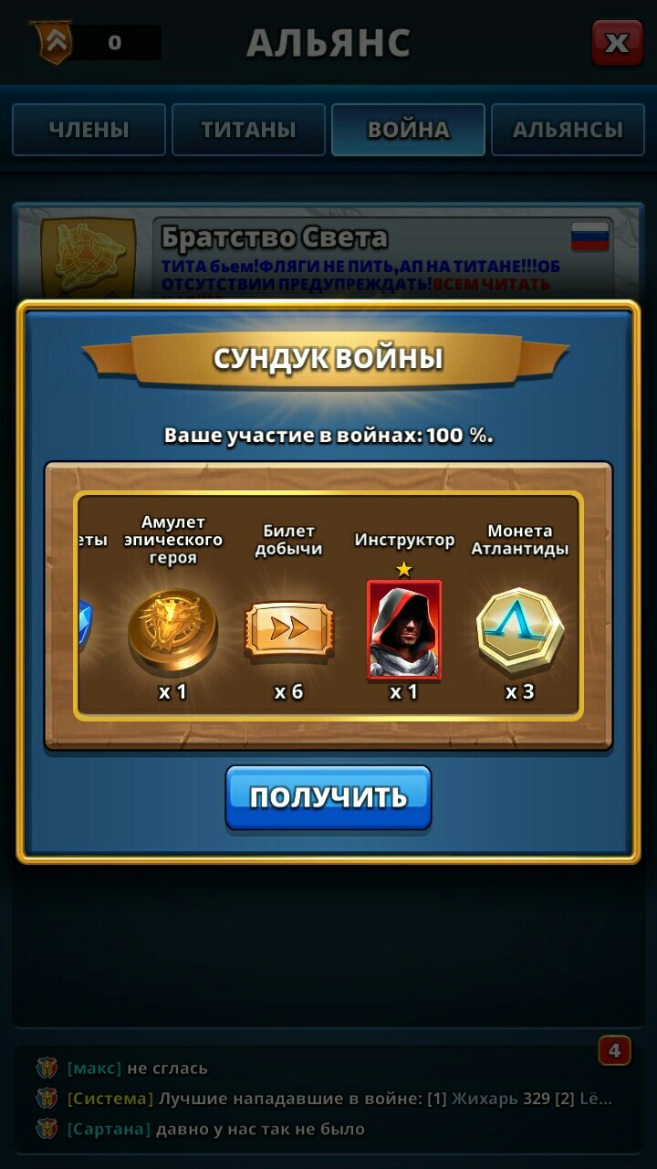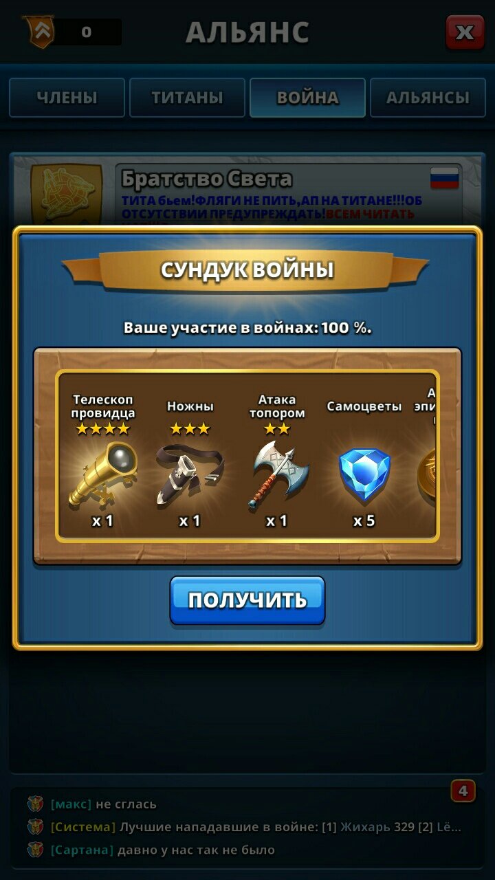 С введением сундуков войны стало намного сложнее покидать альянсы — количество сундуков привязано к альянсу, а ваш личный вклад аннулируется при каждой «прогулке». В связи с этим заметно сократилось количество помощников-титаноборцев, на которых иногда возлагаются большие надежды.