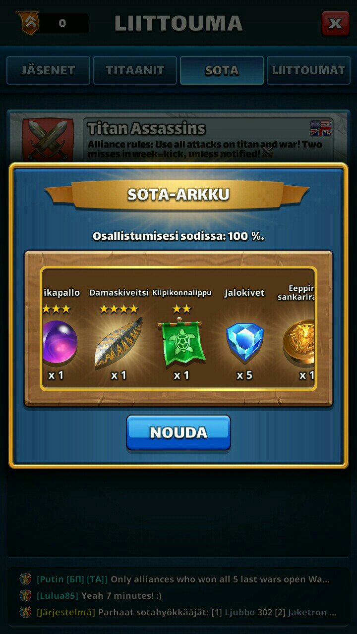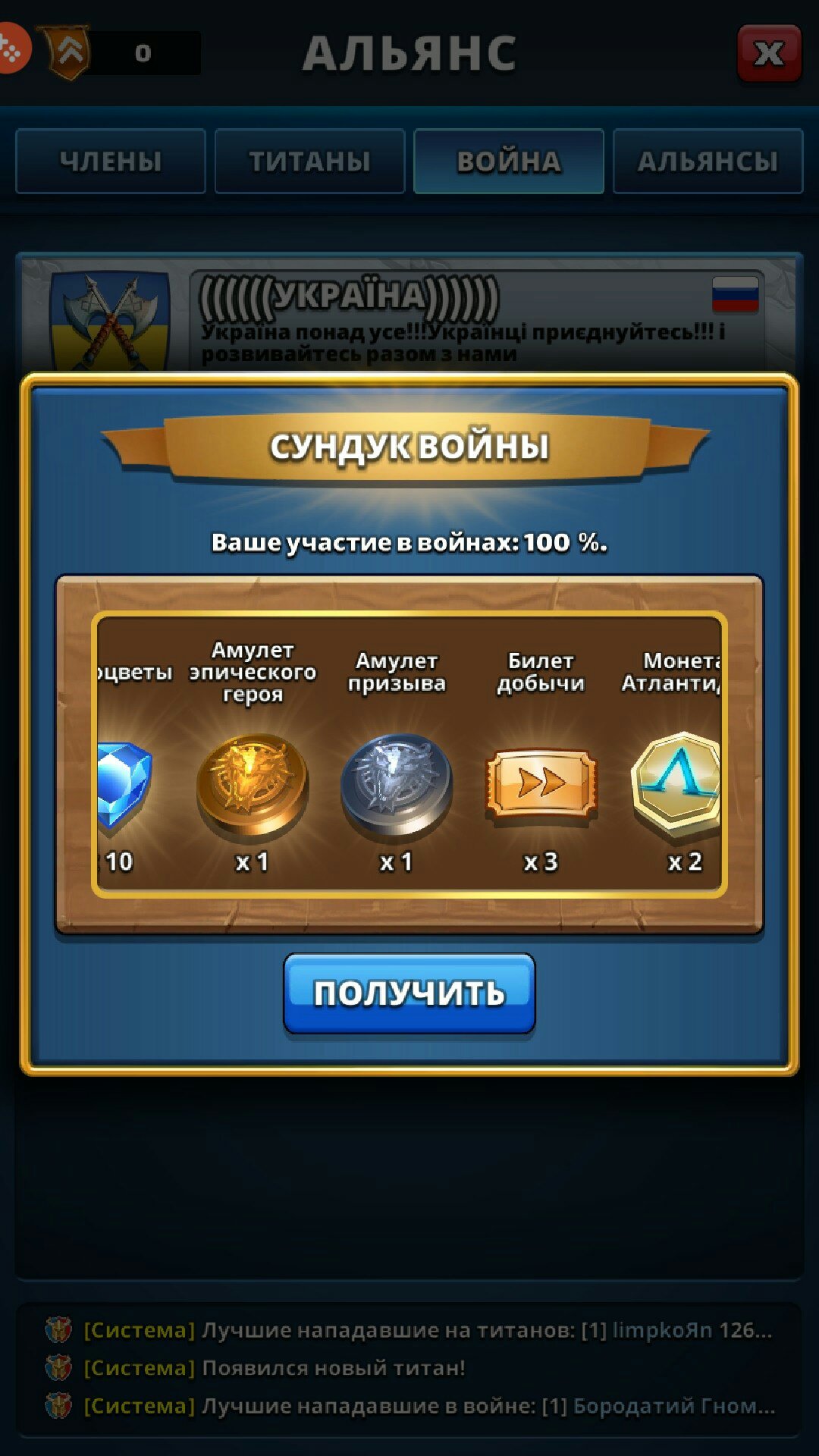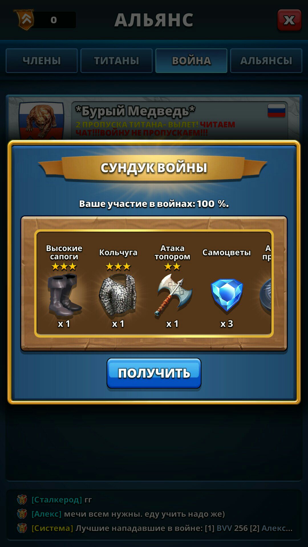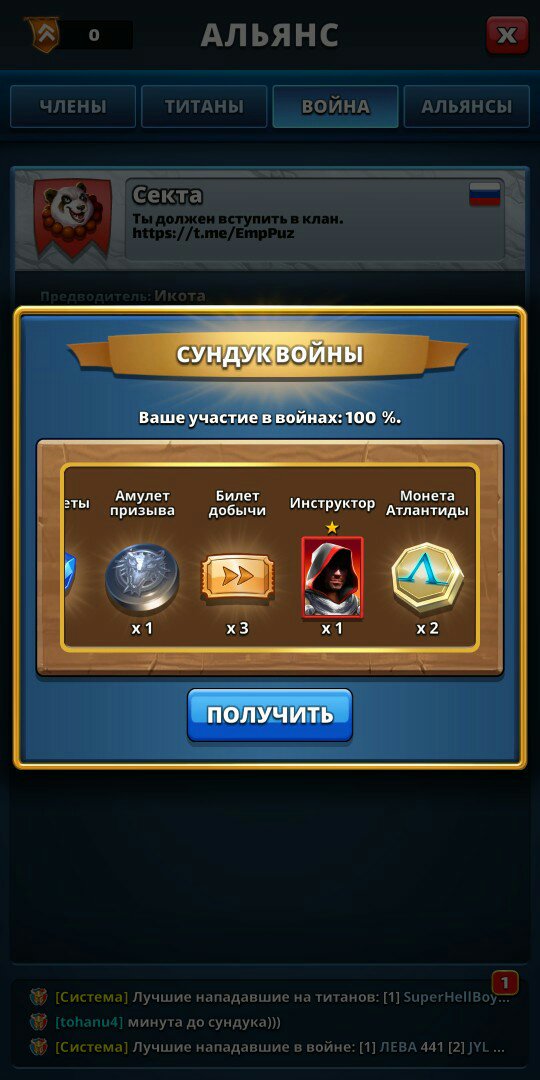 С введением сундуков войны стало намного сложнее покидать альянсы — количество сундуков привязано к альянсу, а ваш личный вклад аннулируется при каждой «прогулке». В связи с этим заметно сократилось количество помощников-титаноборцев, на которых иногда возлагаются большие надежды.